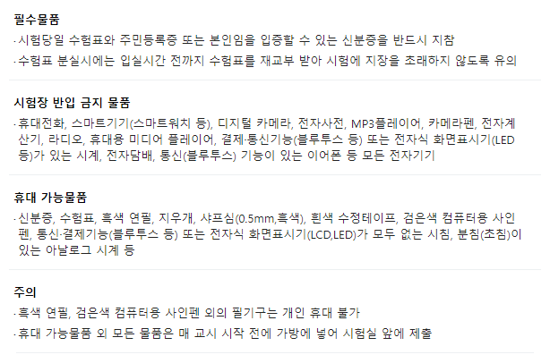 시험당일 수험표와 주민등록증(신분증)은 반드시 지참해야 하며